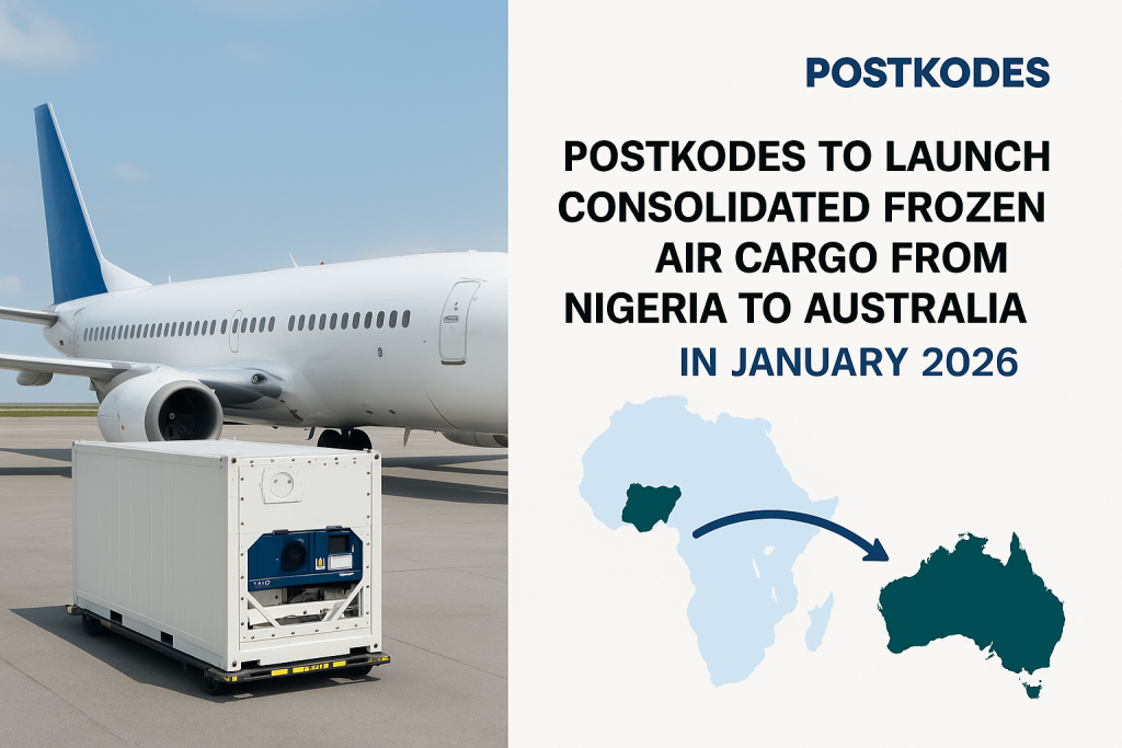 Postkodes Launches Consolidated Frozen Air Cargo Service from Nigeria to Australia Starting January 2026